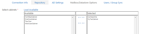 2. A list of all the cabinets available in selected NetDocs repositories is displayed.