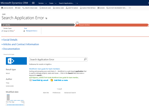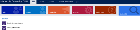 Use the Search links to access an embedded search site where you can use BA Insight products and/or SharePoint out-of-the box to refine your results: