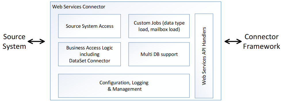 - Web service connectors include a number of functions and communicate to the Connector Framework through a published Web Services-based API.