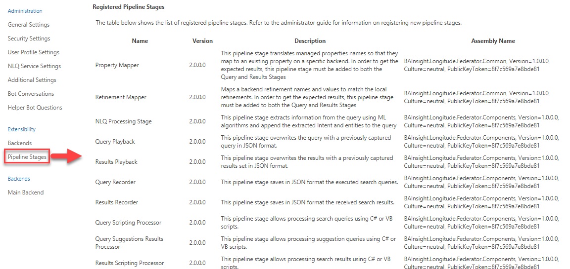 - Available (Registered) Pipeline stages are listed within your SmartHub administration site (http://<SmartHubURL>/_admin).