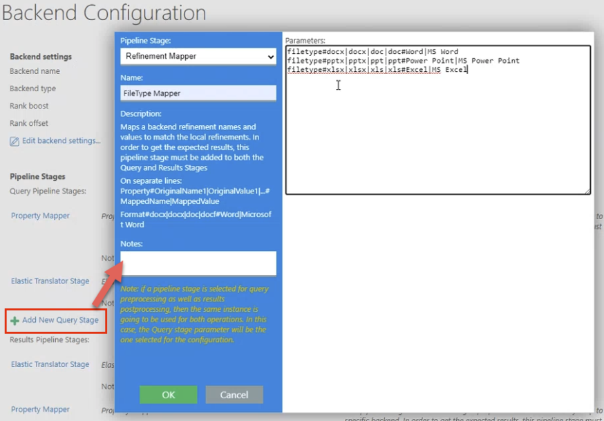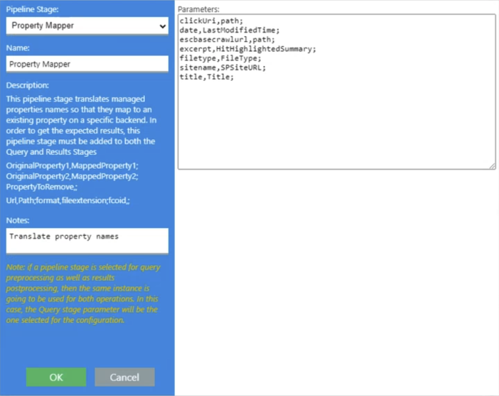 This pipeline stage must be added to both the Query and Results stages.