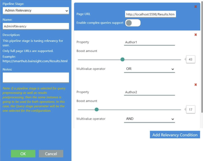 - Admin Relevancy is added as a Query pipeline stage only.