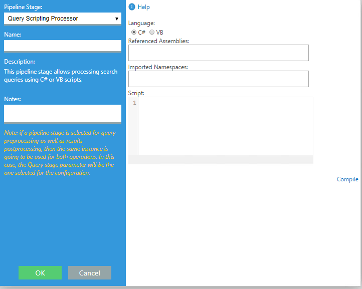 Use this stage to process the received search query requests by providing complete scripting access to the