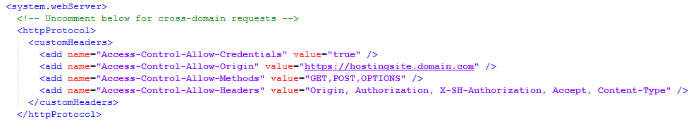 1. Uncomment the <httpProtocol> section for cross-domain requests.