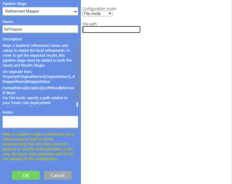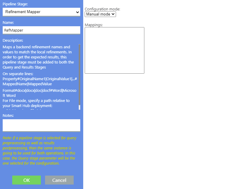 - The Refine Mapper stage is a pipeline stage that maps backend refinement names and values to match the local refinements.