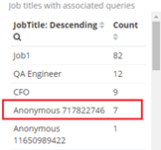 For each User Profile property (such as Department, Job, or Location): if a user chooses to track operations, but to hide their identity, a unique value appears, such as Anonymousasda43dsad5.