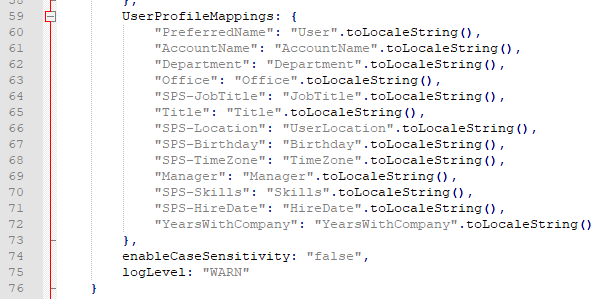 See the User Profile mappings from the DefaultModuleSettings.js file below.