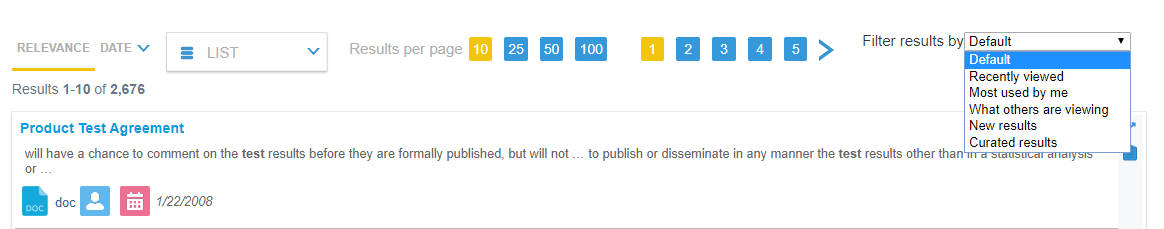- Recommended results enable you to filter your search results according to the parameters that you specify.