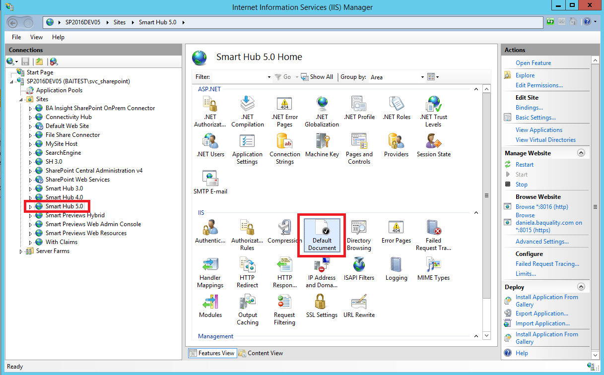 - Open Internet Information Services (IIS), and select your SmartHub site.