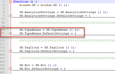 - TypeAhead settings are located around line 31. See the following screenshot: