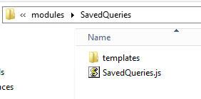 - The SavedQueries.js file is shown in the /modules/SavedQueries.js.