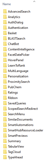 - On the page "Results.html" SmartHubResourceLoader uses the settings file "ResultsPageSettings.js" to load the settings on the (query) Results page.
