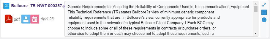 The Summary Content returns values into a modal windows for a specific metadata.