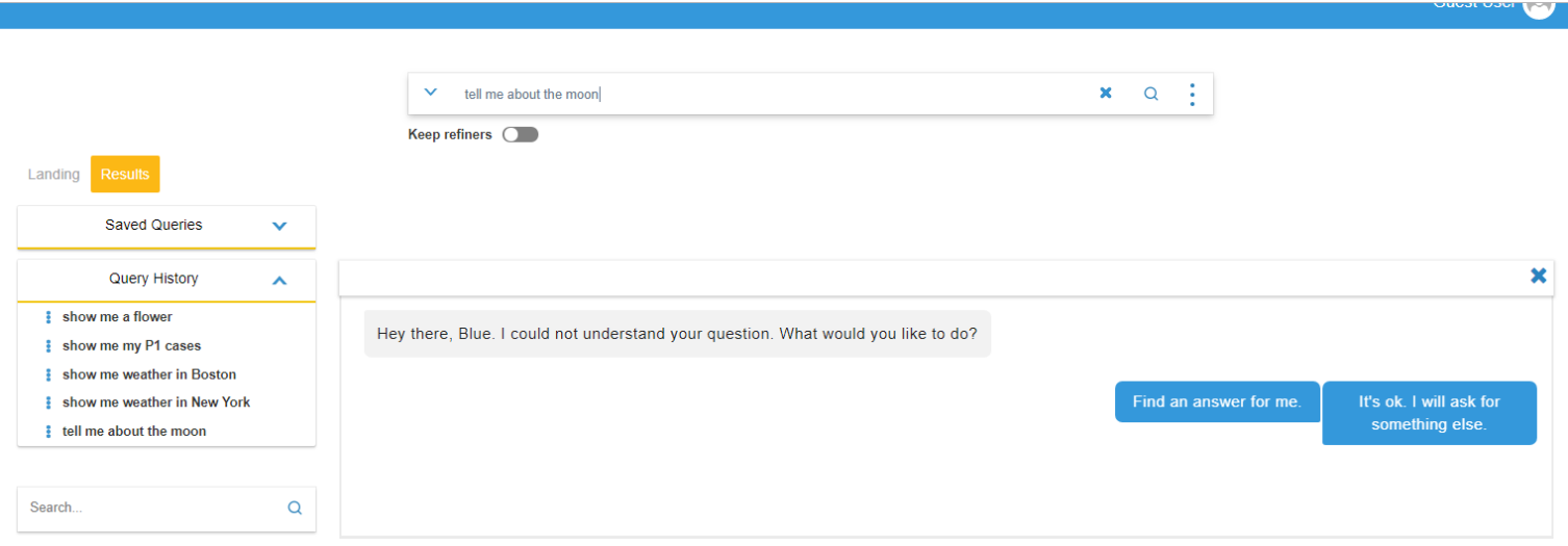 If the bot cannot provide an answer to the question, the user is prompted to either: