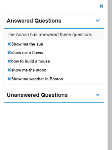 Predefined list of questions that will be listed in bot when user clicks on "What can I ask" |