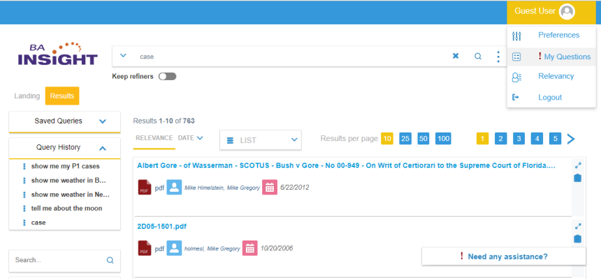 All the submitted questions, including both Answered and Unanswered questions can be viewed under the "My Questions" section. See the following graphic.