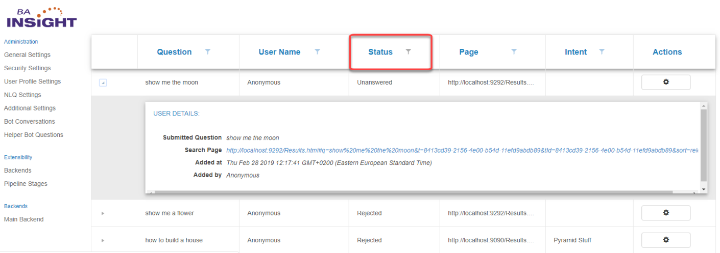 An example of an unanswered user question appears below: