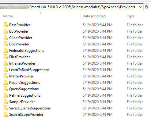 - Each suggestion provider is defined under modules > TypeAhead > Providers