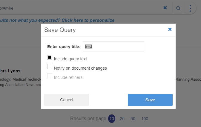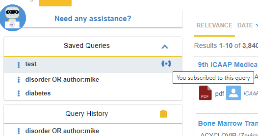 - If the user has subscribed to a query, a subscription indicator is displayed next to the query. See the screenshot below.