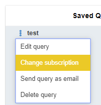Unsubscribe or change the subscription options from a saved query using the vertical dot icon menu for the saved query: