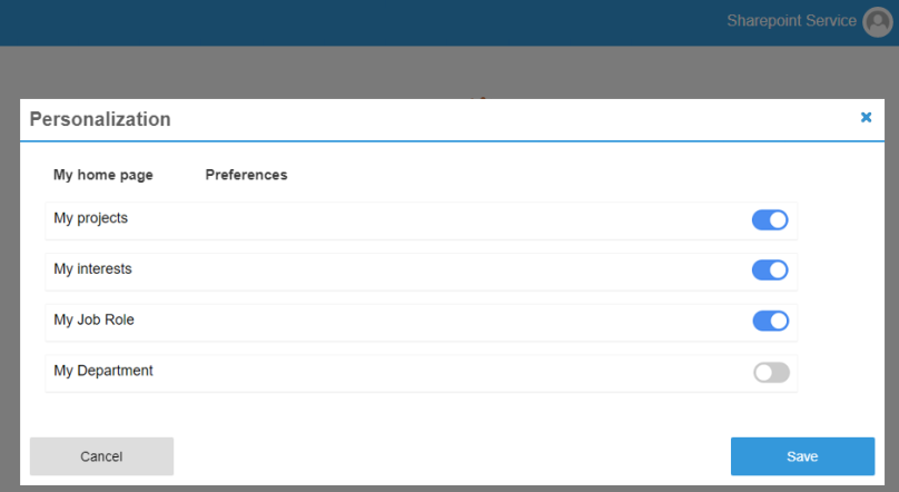 Personalization Sections Settings