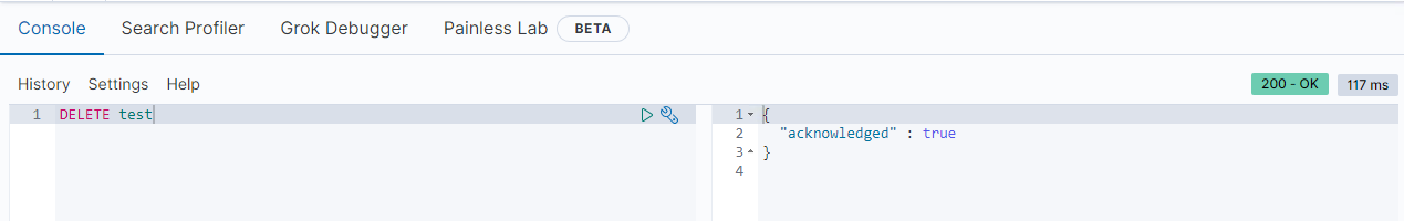 - Go to your Kibana console and open the Dev Tools tab: http://localhost:5601/app/kibana#/dev_tools/console?_g=()