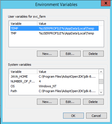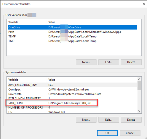 JAVA_HOME. - Specify the path to the Java install directory (root of