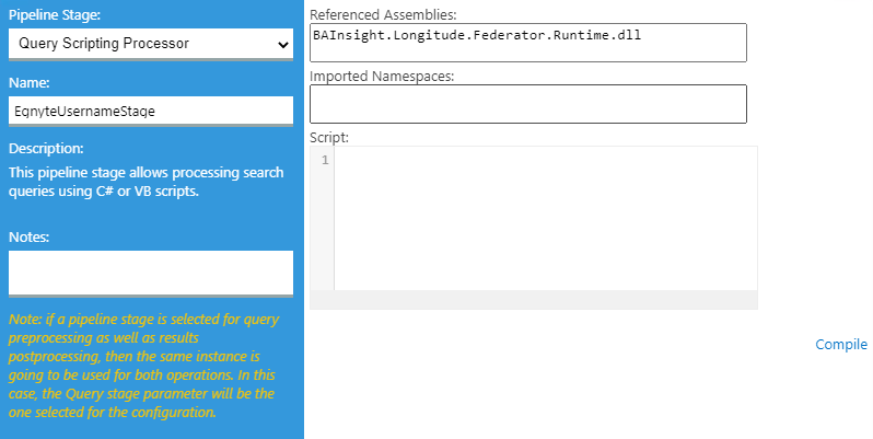 Query Scripting Processor Stage