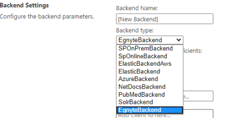 Select EgnyteBackend from the "Backend type" drop-down menu: