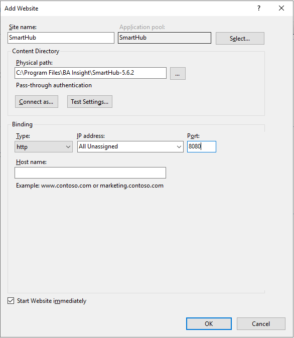 - Create the SmartHub Web Site in IIS