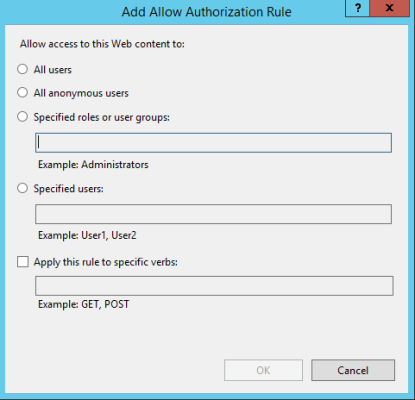 - Select IIS>Authorization rules.