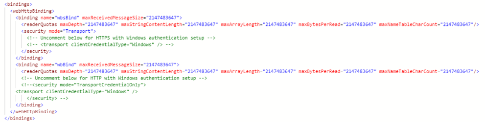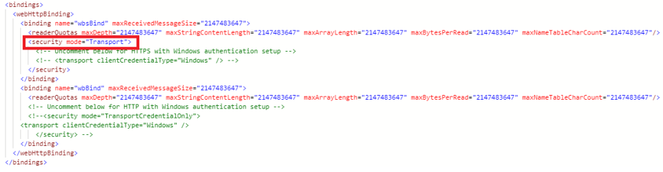 - Uncomment BOTH wbBind and wbsBind <security> nodes