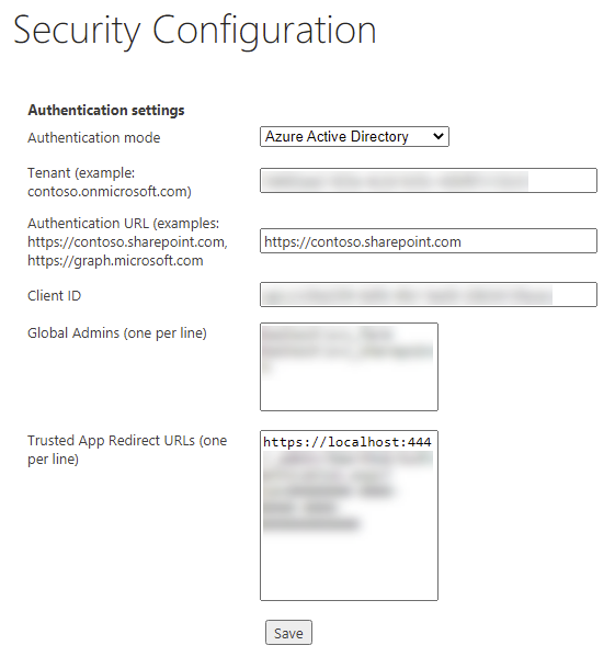 - Enter your Azure Authentication information in SmartHub under "Security Settings"