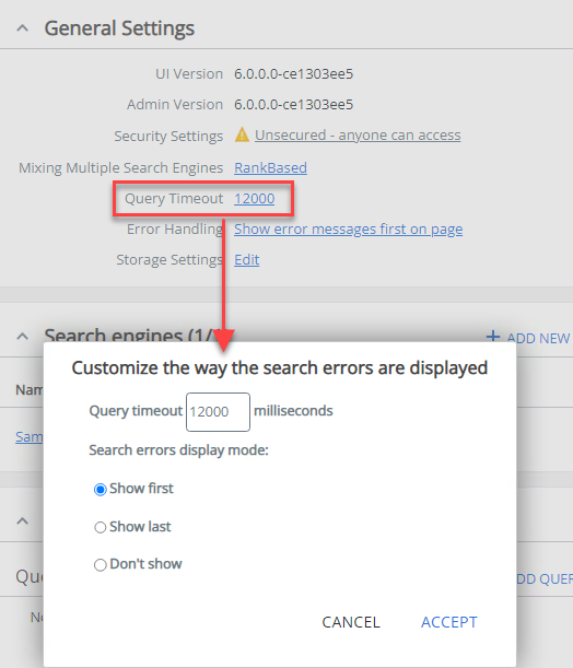 3. Query timeout: The query, or backend, timeout represents the time span (in milliseconds) that is allocated to each backend for query response.