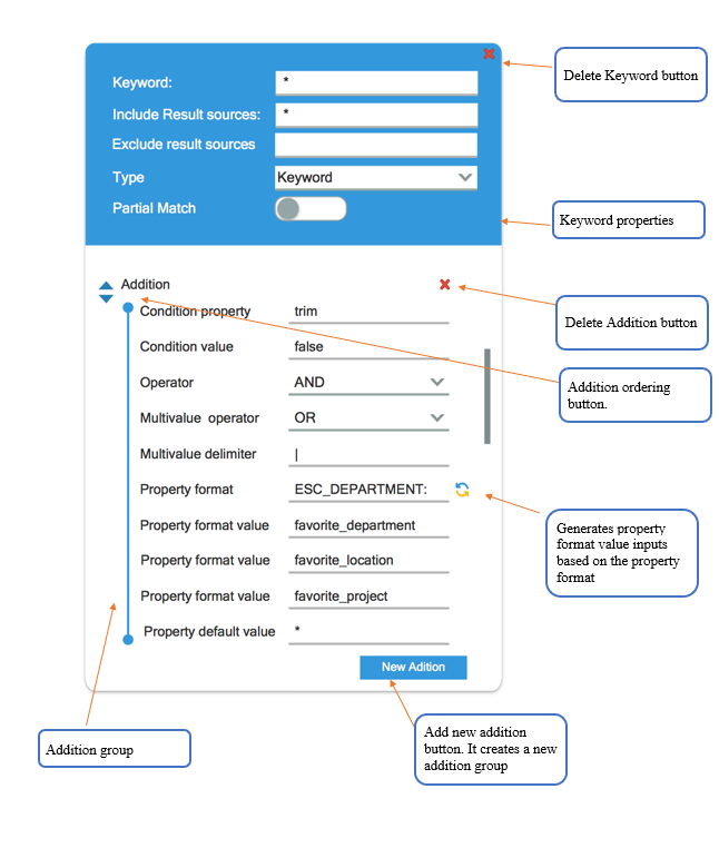 | Addition | Group of parameters described in bulleted list below. Can be added or removed (with red 'X'). |