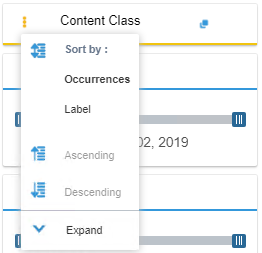 - Specifies the sort criteria options to display in the facet Settings menu.