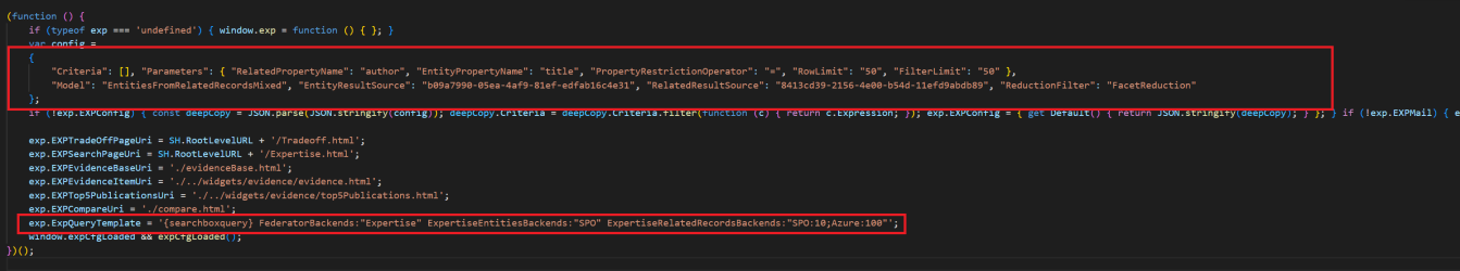 The expertise configuration and the query template used for expertise pages can be found in the expertise config.js file