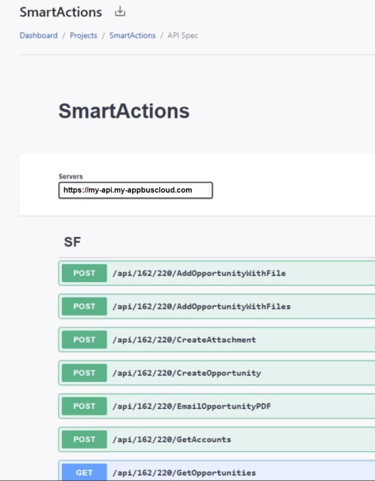 A Smart Action similar to the one in the example above that uploads files to SharePoint is shown below in AppBus.