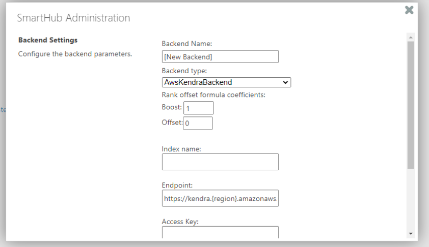 - Click the "Add New Backend" link to add your new Kendra backend.