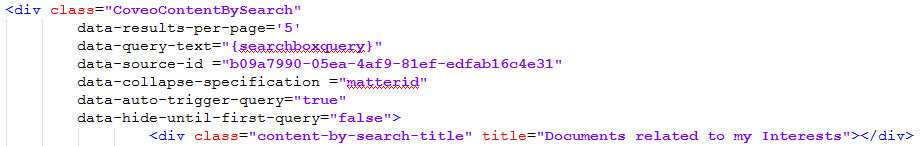 2. Locate your Content-by-Search <div> element and add the data-collapse-specification property like the one shown below.
