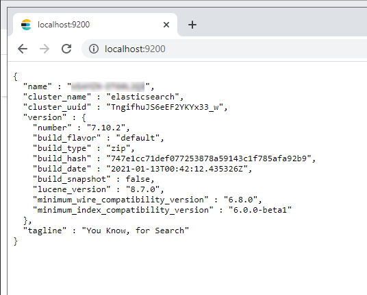 5. Verify the Elastic node status by going to http://localhost:9200.