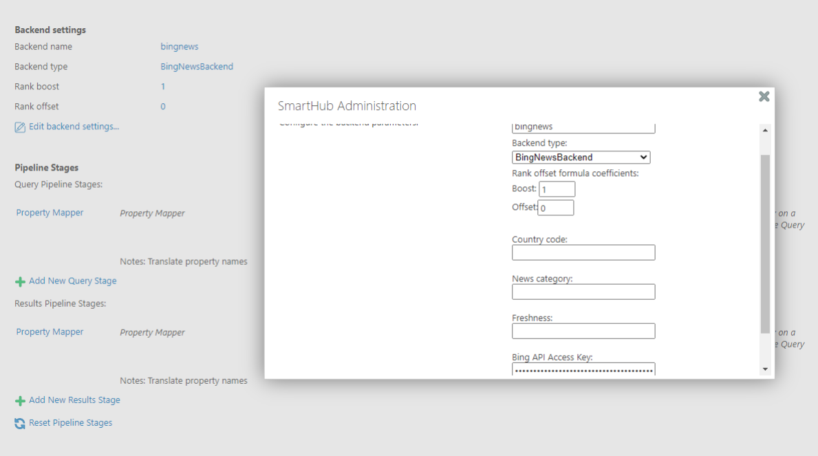 - Select the backend type "BingNewsBackend."
