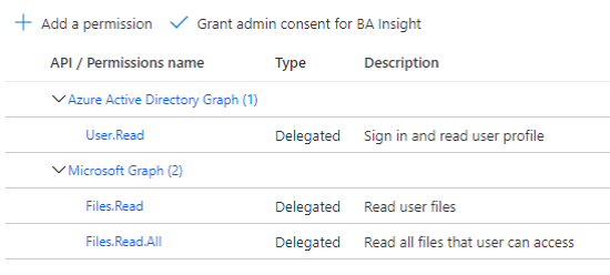 The Client ID specified in Azure Active Directory Authentication must belong to an application with the following permissions: