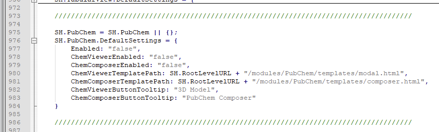 If you are setting up PubChem you must also add the following code to your custom settings file, (such as a custom Results settings file):