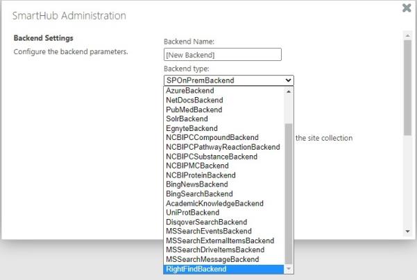 - TheBackend Settingspage appears. Select RightFindBackendfrom the "Backend type" drop-down menu:
