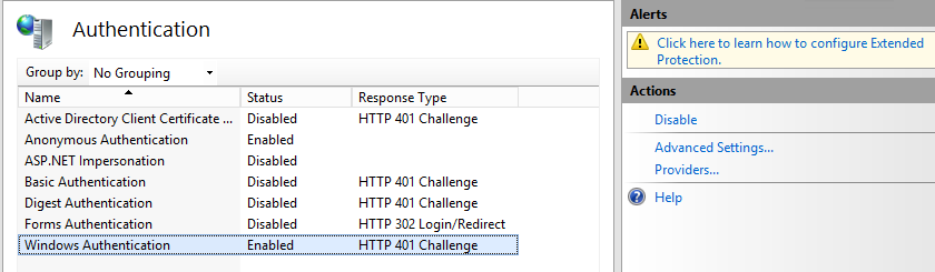 - Select IIS>Authentication.