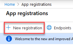 - Click App registrations>New registration.