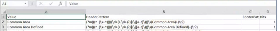 - Common Area and Common Area Defined in the final Header Pattern to be used for Section Extraction