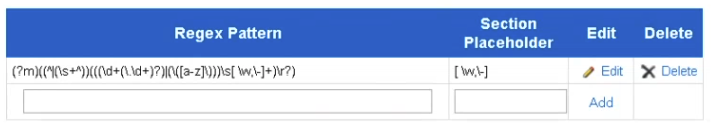 - Regex pattern: the actual regex pattern that will match the section header