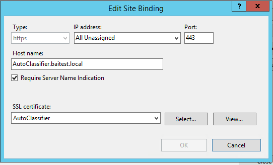 - Access to this example site would be "https://autoclassifier.baitest.local"
